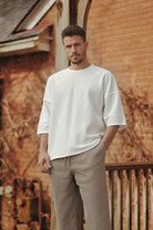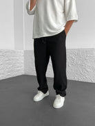 Deze plooit trousers bieden een perfecte balans tussen nonchalante pasvorm en verfijnde textuur. De zachte ribstructuur geeft een subtiele, luxe uitstraling, terwijl de relaxte snit zorgt voor ultiem draagcomfort – ideaal voor zowel thuis als onderweg.